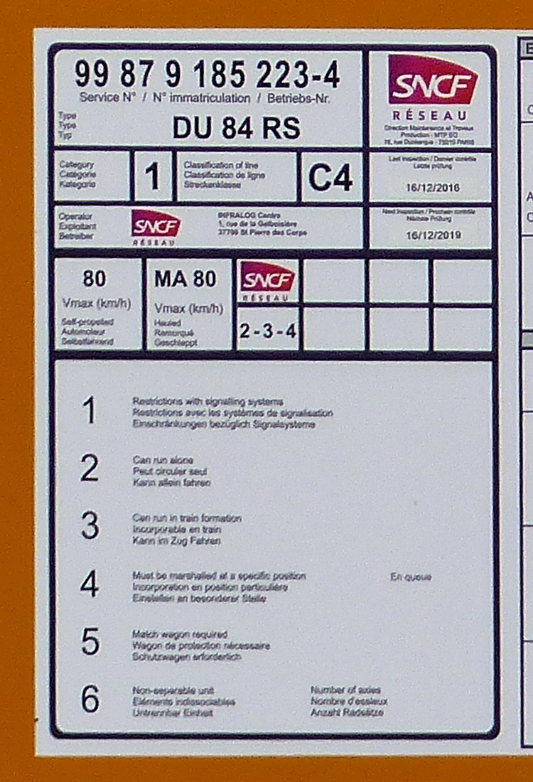 Voici la Draisine DU 84 RS 9-723 - 99 87 9 185 223-4 SNCF RESEAU Infralog Centre Saint Pierre des Corps