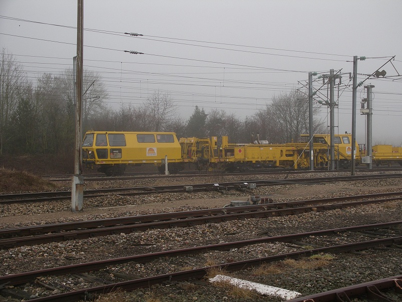 Quelques bourreuses de différentes entreprises en gare d'ABANCOURT (Oise) sur la ligne AMIENS-ROUEN