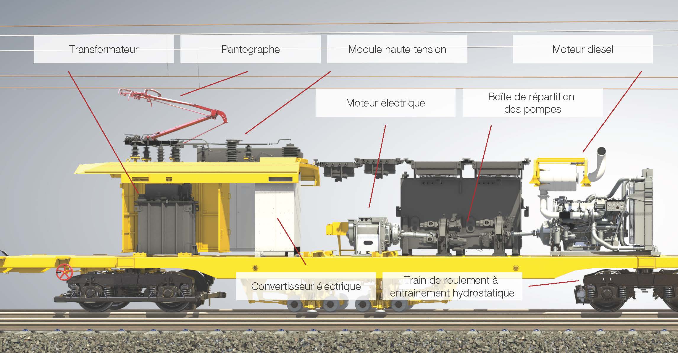 en septembre dernier, le constructeur Autrichien Plasser&Theurer à présenté au spécialiste deux nouvelles machines de bourrage et brossage équipé d'un système d'entrainement hybride. chaque machine est en effet équipé d'un système d'entrainement hydrostatique alimenté en électricité par un pantographe placé sur le toit et un moteur diesel.