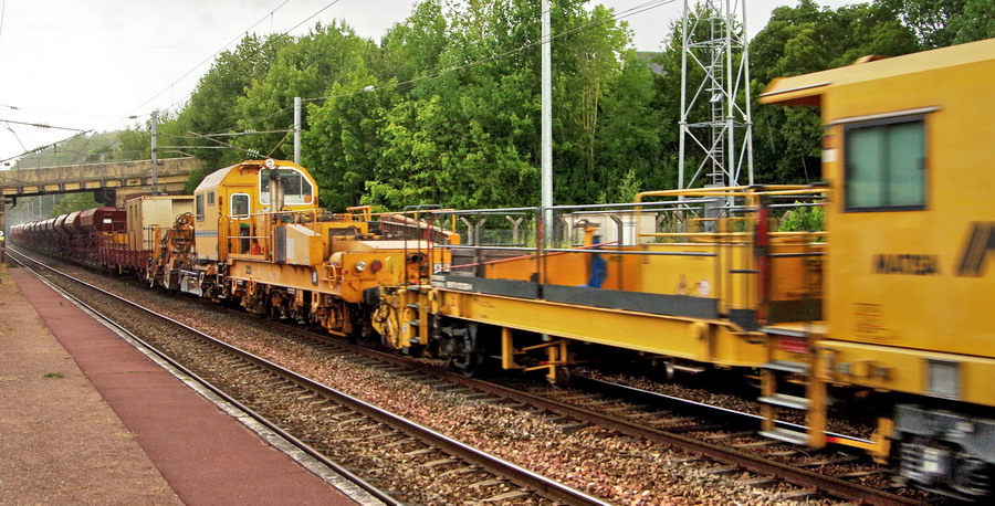 avec la Bourreuse d'appareils B66 UC - 99 87 9 124 554-6 de CLMTP ex Delcourt Ferroviaire