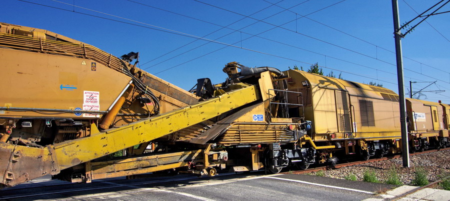 Dégarnisseuse Cribleuse Matisa C-75 - 99 87 9 314 507-4 GCF Roma sur le RVB voie 1 bis à Courtois sur Yonne (89) en avril 2017.