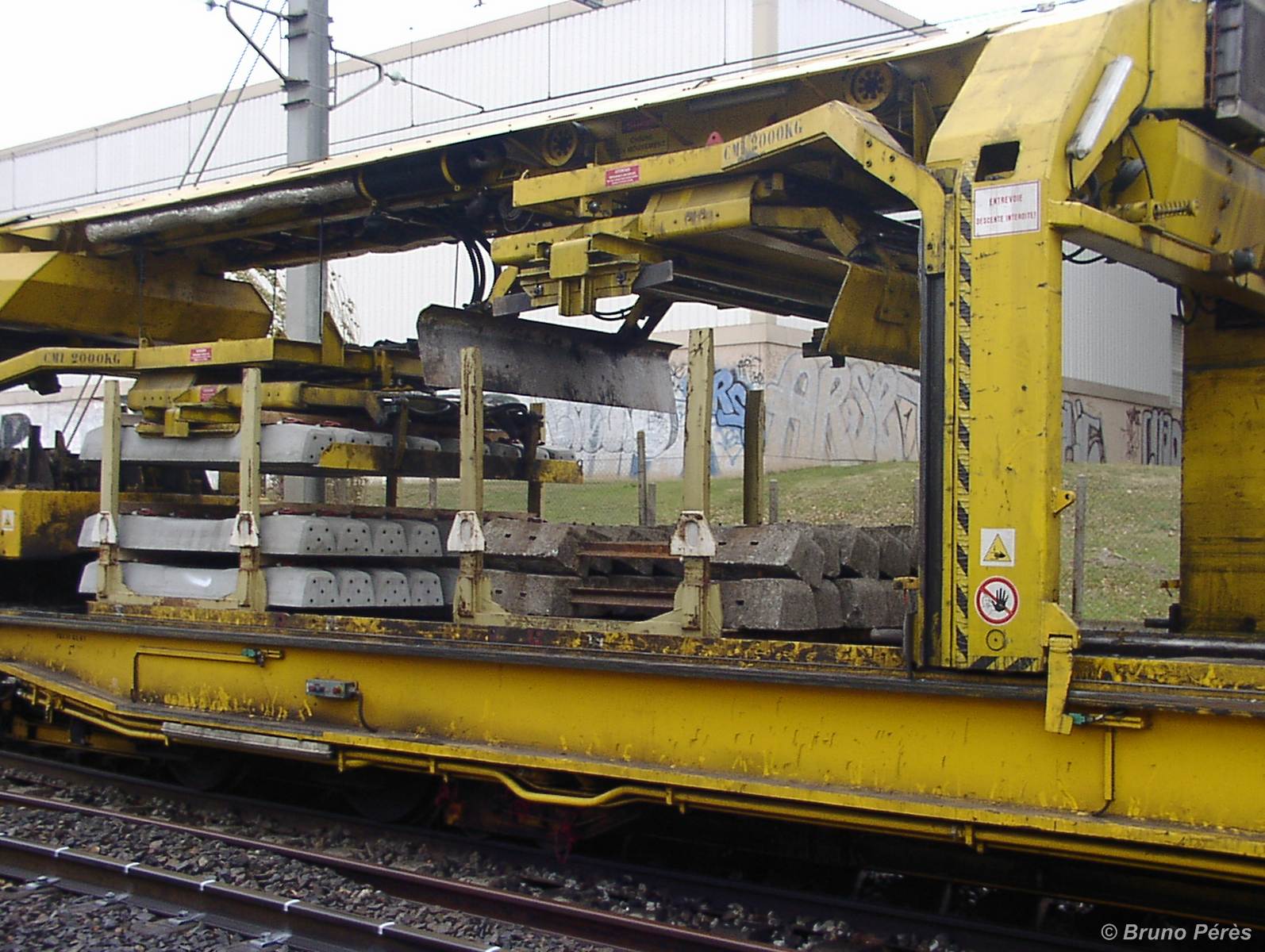 Ce portique d'approvisionnement est chargé de transférer les traverses neuves des wagons vers le SMD, et de faire faire le chemin inverse aux vieilles traverses.