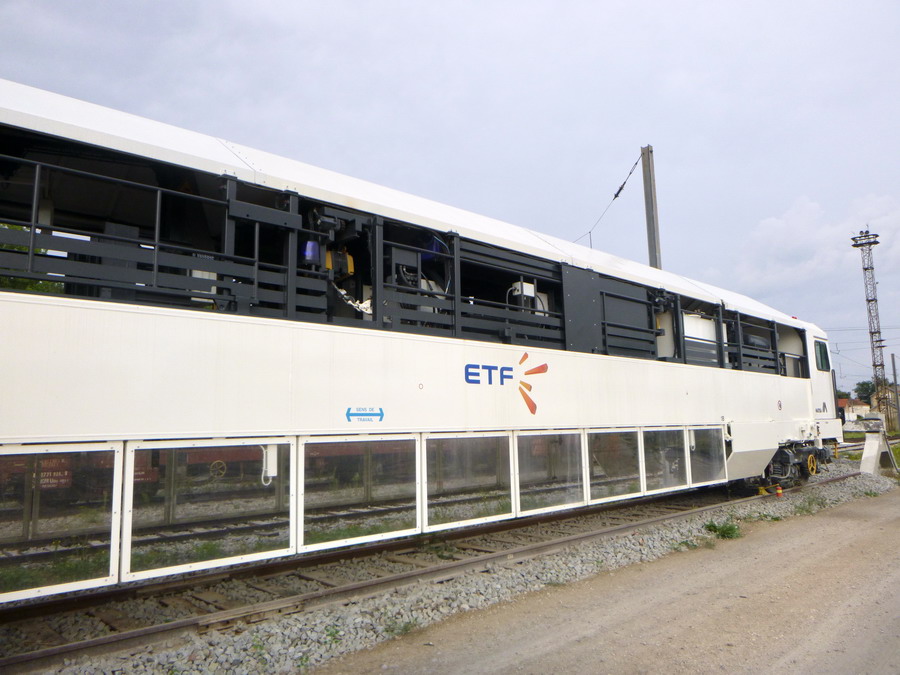Voici le wagon JICAD II avec le JICAD I - 99 87 9 312 505-0 sur la base de travaux ETF de Verberie (60) près de Compiègne pour les travaux