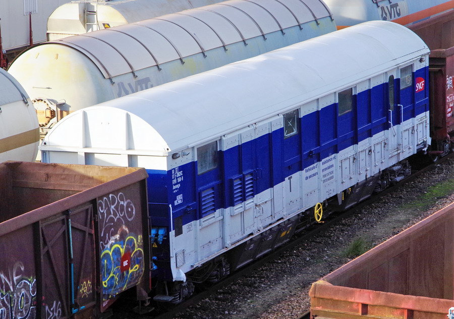 Voici le wagon couvert "Véhicule d'assistance et de secours ferroviaires" 80 97 979 1 568-1 Uass H52 6 F-SNCFC