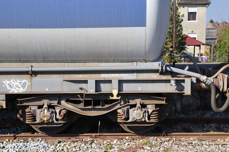 Voici le wagon citerne 80 87 979 9 804-0 Uas W64 6 SNCF-RO - Point d'attache Caen dans une rame laveur d'isolateur Ã