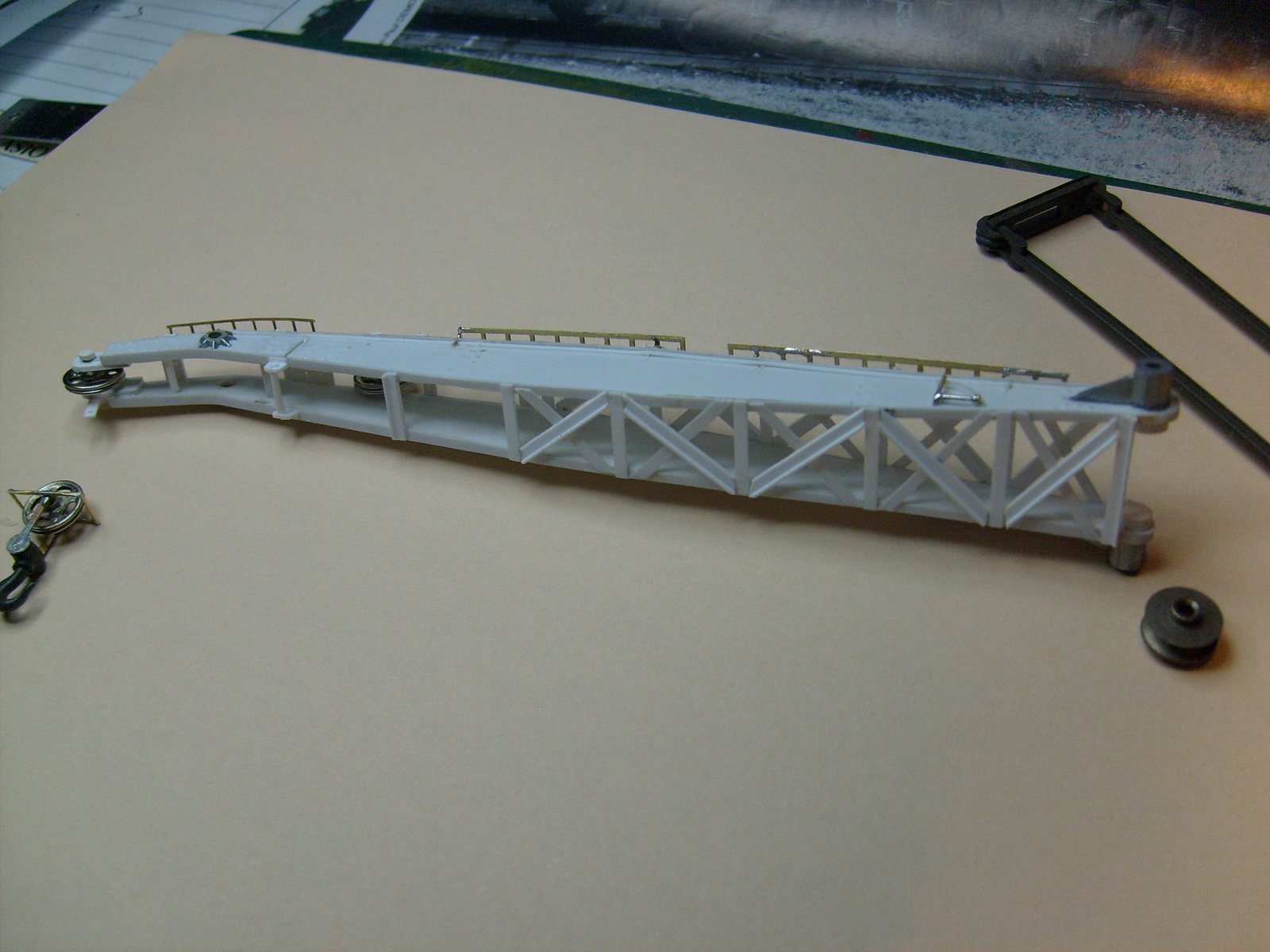 Comme je le répète souvent lors de mes expos,ce n'est pas la grue parue dans LR, elle à été réalisée bien avant la parution de la revue.Je me suis inspiré de l'article passé dans VF dans lequel il y avait un plan et quelques photos.Et pour répondre à l'autre remarque,je sais que les stabilisateurs ne sont pas déployés,j'ai préféré les laisser fixes pour qu'ils ne se baladent pas lors des déplacement de la grue.Le moyen de mobilité de la flèche se situe dans la cheminée qui elle même est mobile suivant la position de travail ou de transport. Encore merci de vos appréciations daccord07