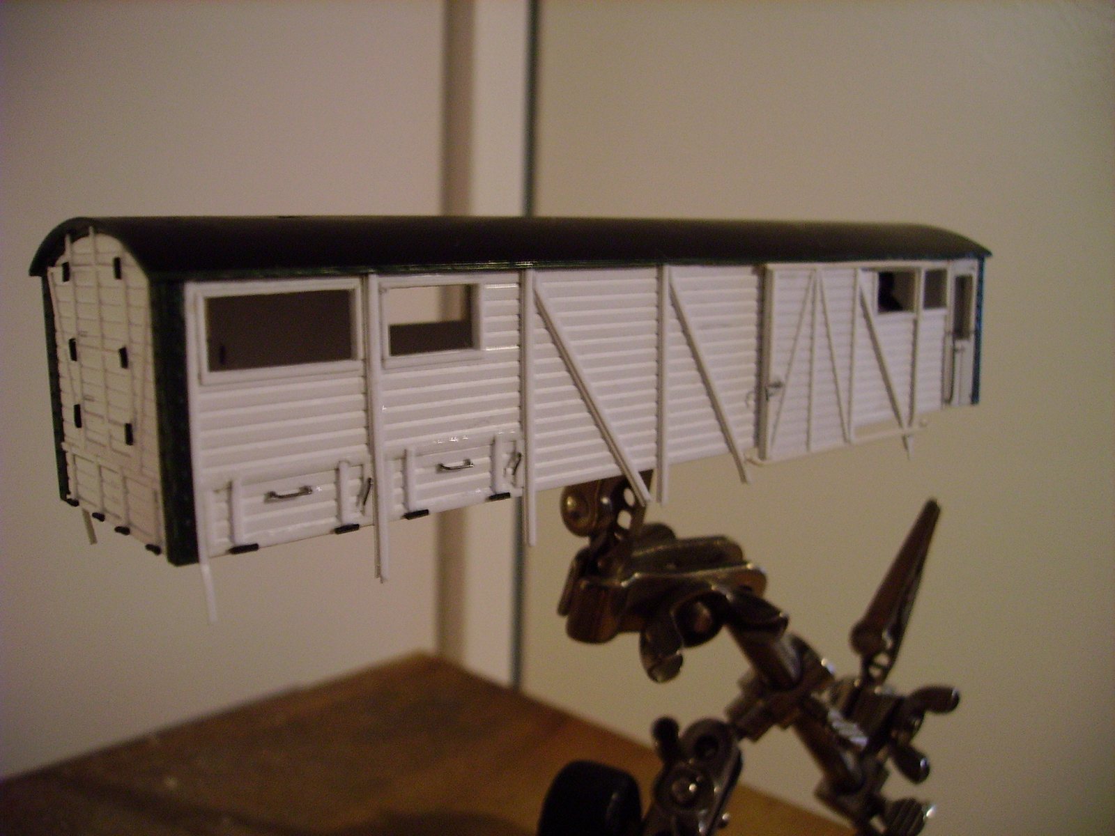 Autre variante de wagon de secours,la dernière livrée appliquée sur les wsgi.Sur une base de Jouef.