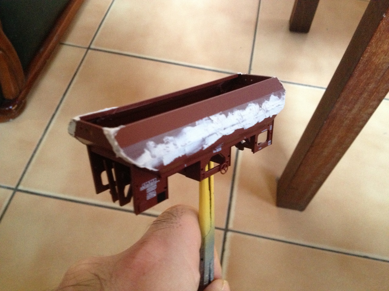 mastic et réparation (en fait ce wagon casse comme du verre !!!)