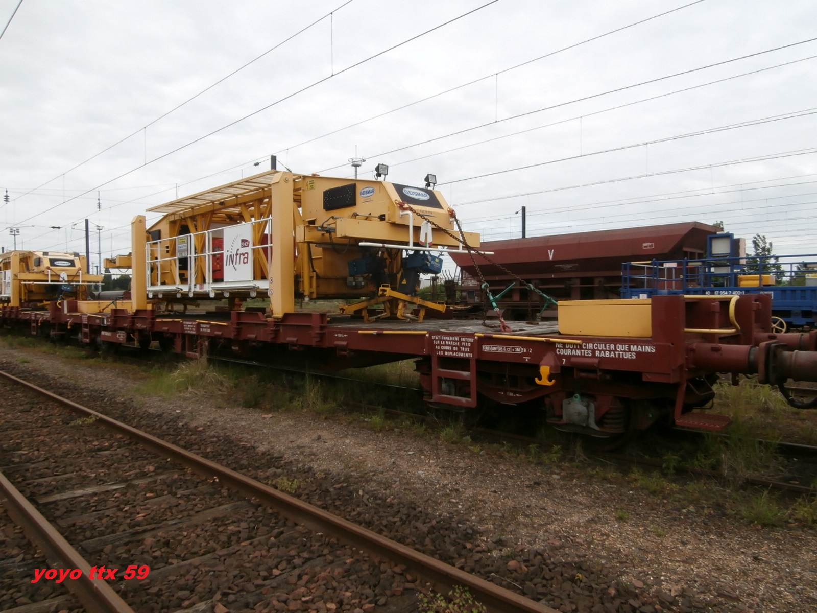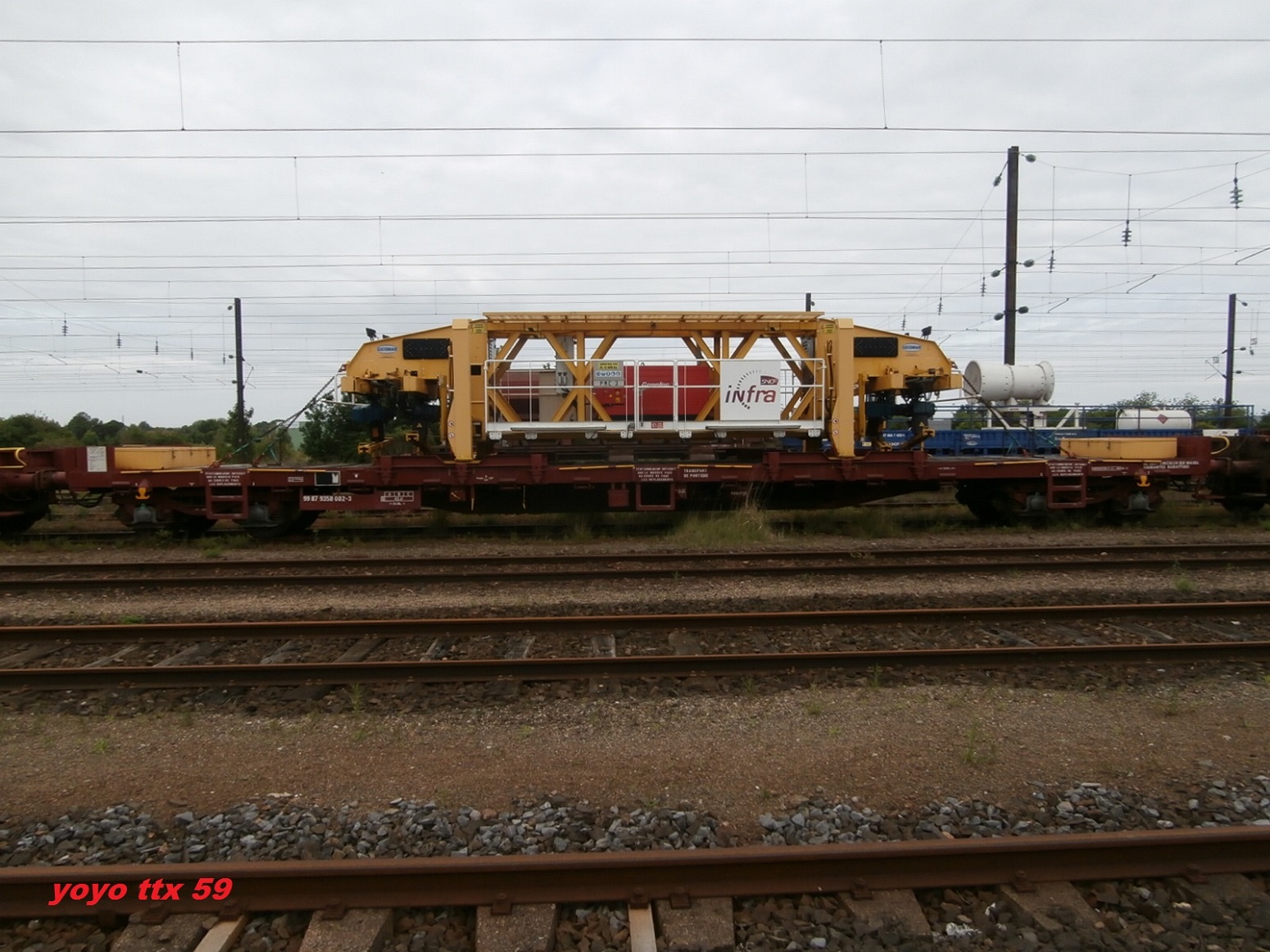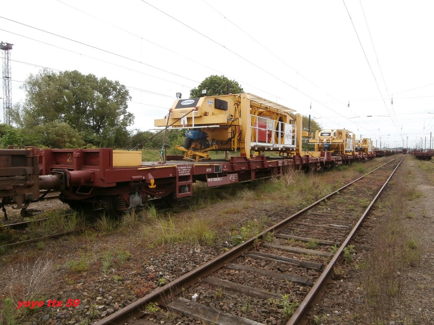 Voici 3 wagons avec des portiques PMC pour la LGV - SEA à Saint Pierre des Corps le 27-09-2014