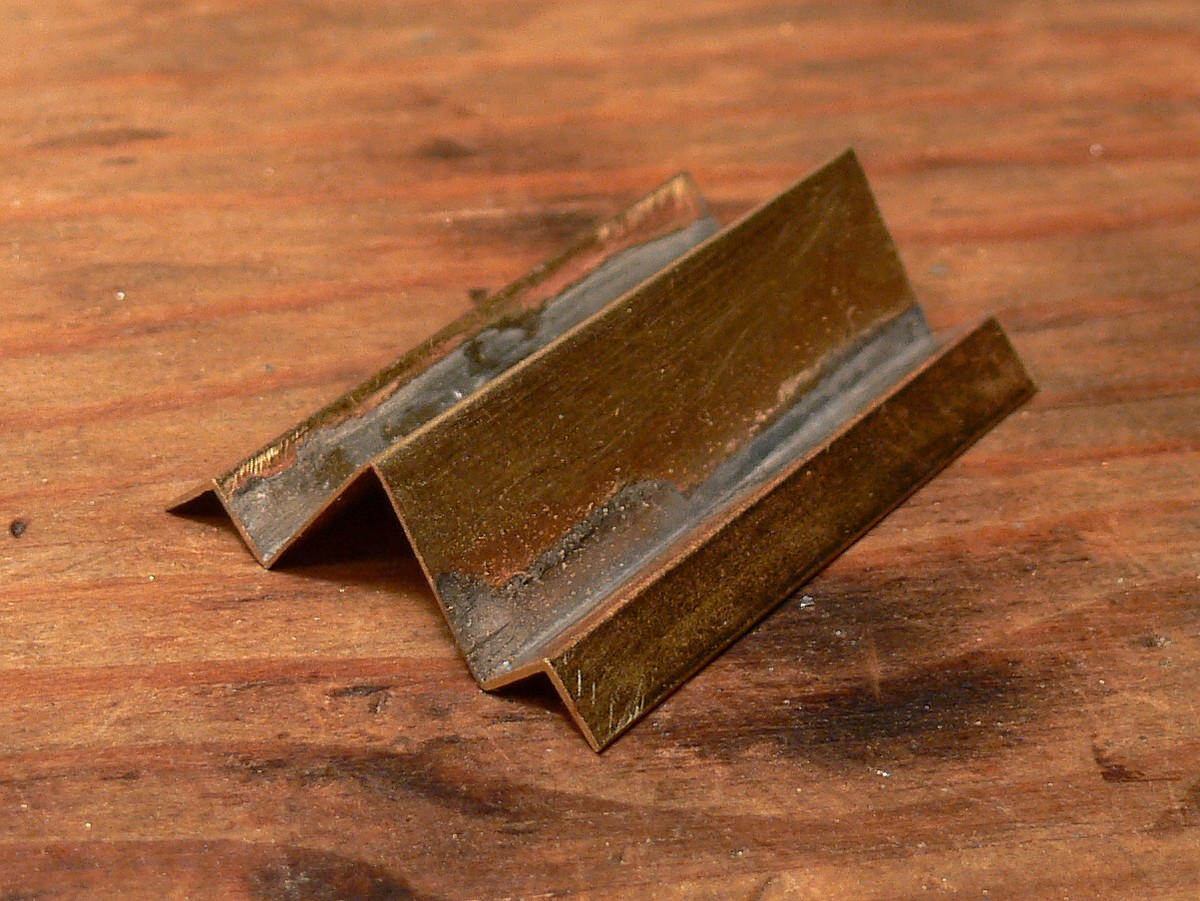 Tôle de 0.2 pliée + 2 demis tubes carrés en laiton soudés de chaque côté et mise en place :