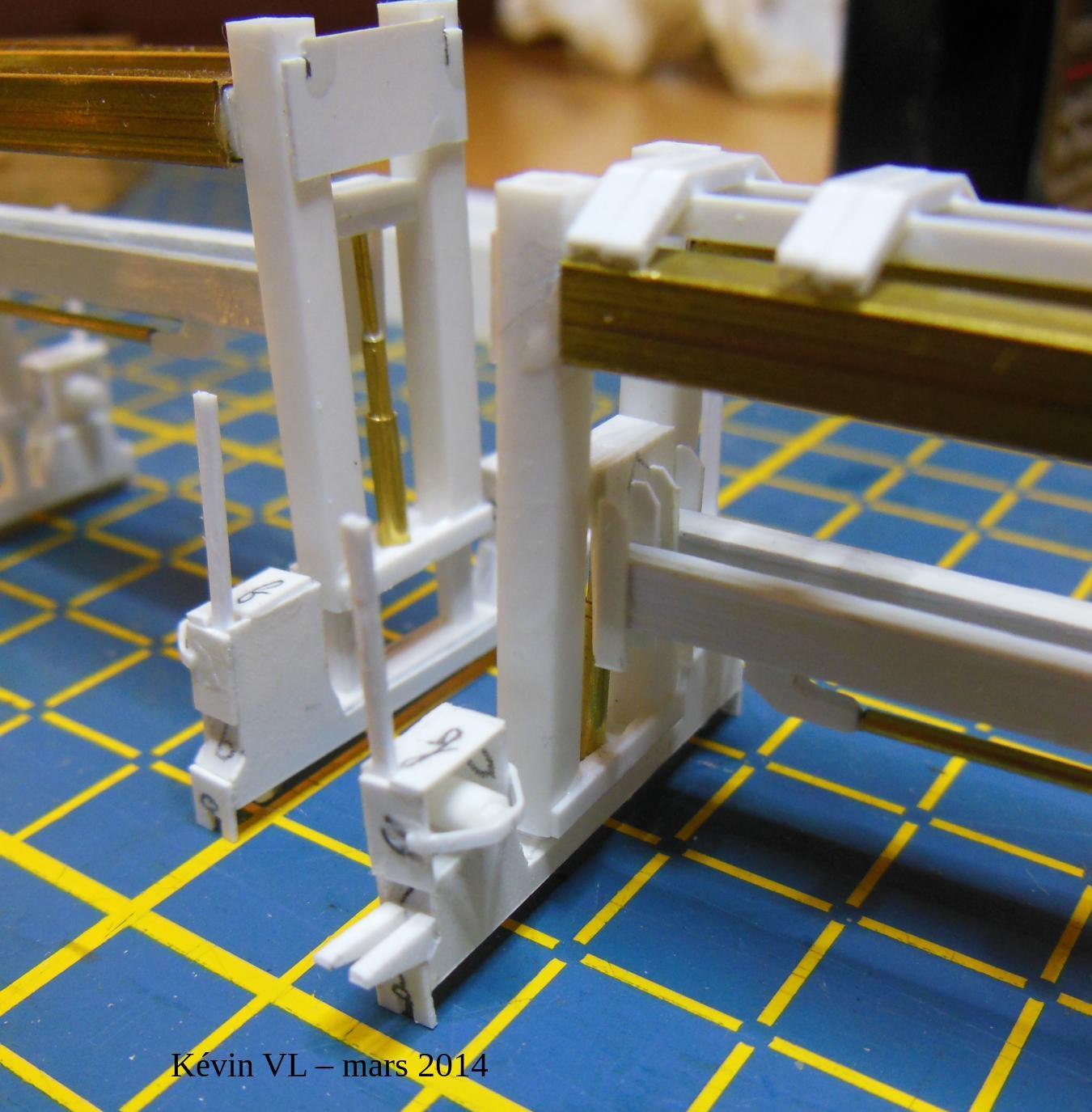 à droite, montage du support portant le palonnier sur les traverses (porteuses)