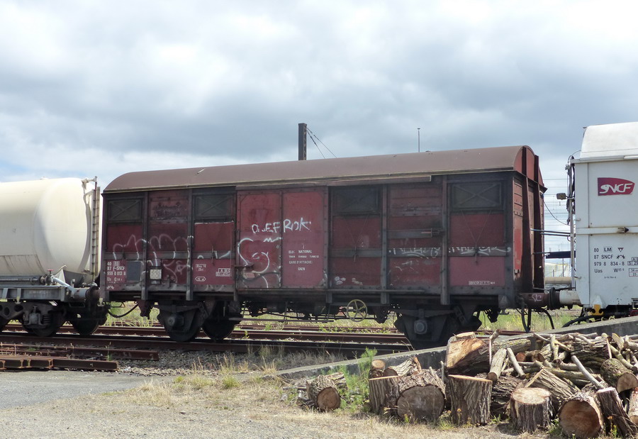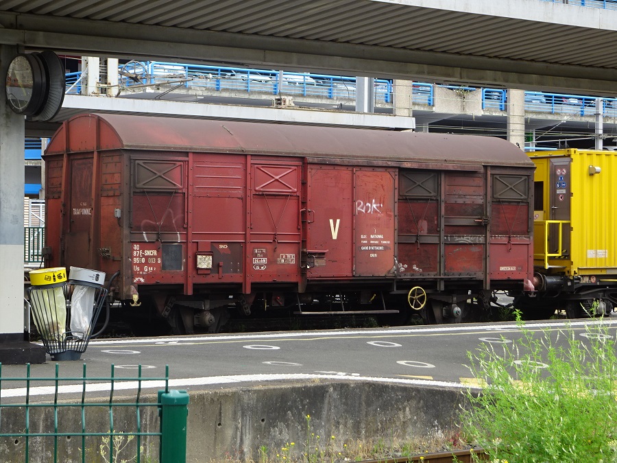 Voici le wagon couvert à essieux 40 87 959 0 013-8 Us G54 2 - SNCF-RO Point d'attache Caen - Elog National