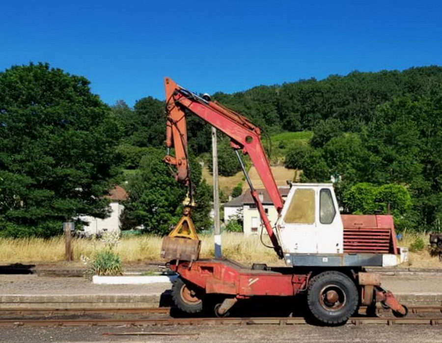 Voici quelques photos d'Eric Fiquet en gare de Bort-les-Orgues vers le 7 juillet 2019 de la Pelle Rail route Poclain TY45 - 74204032