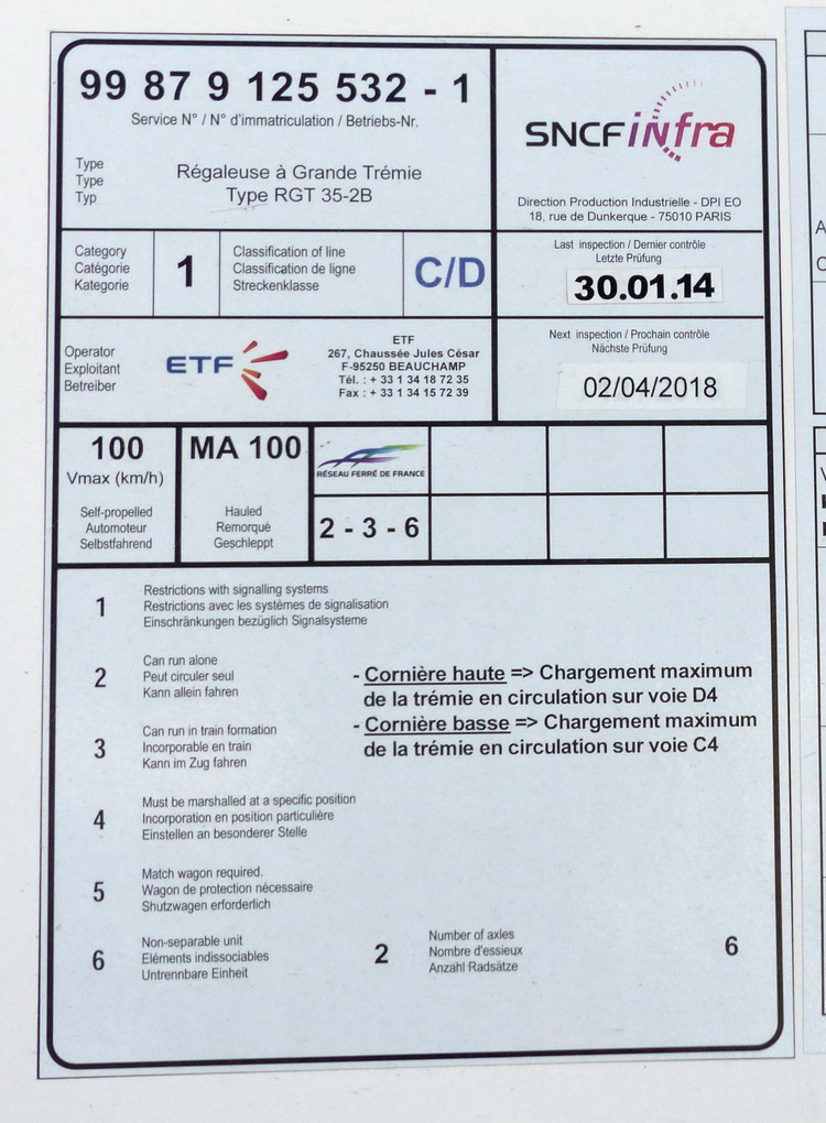 Equipement : TVM 430 - Tare 94 T - Longueur 31,62 m
