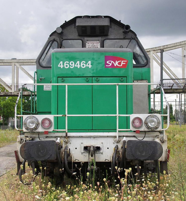 Voici la 469464 Infra pas de logo en livrée Fret (ex 66464 mise en service le 12-04-1970) sur un train Mauzin