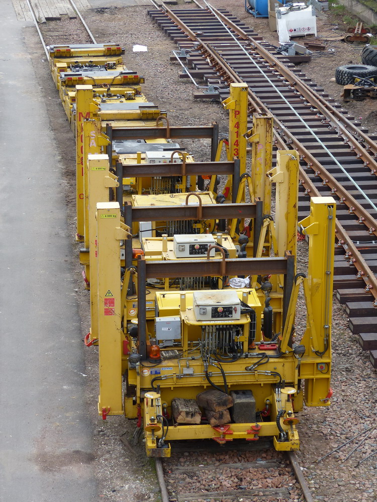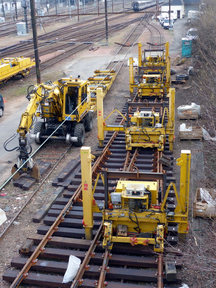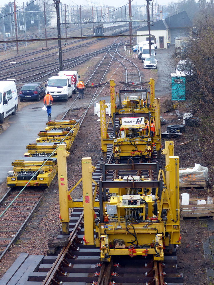 Bonjour Voici le PEM 807 n°8255 de Meccoli entre les PEM 807 n°19, 4143, 030, 8259 et les 5 LEM 460 pour les aiguillages du RVB de la gare Tours - photos du 06-03-2015