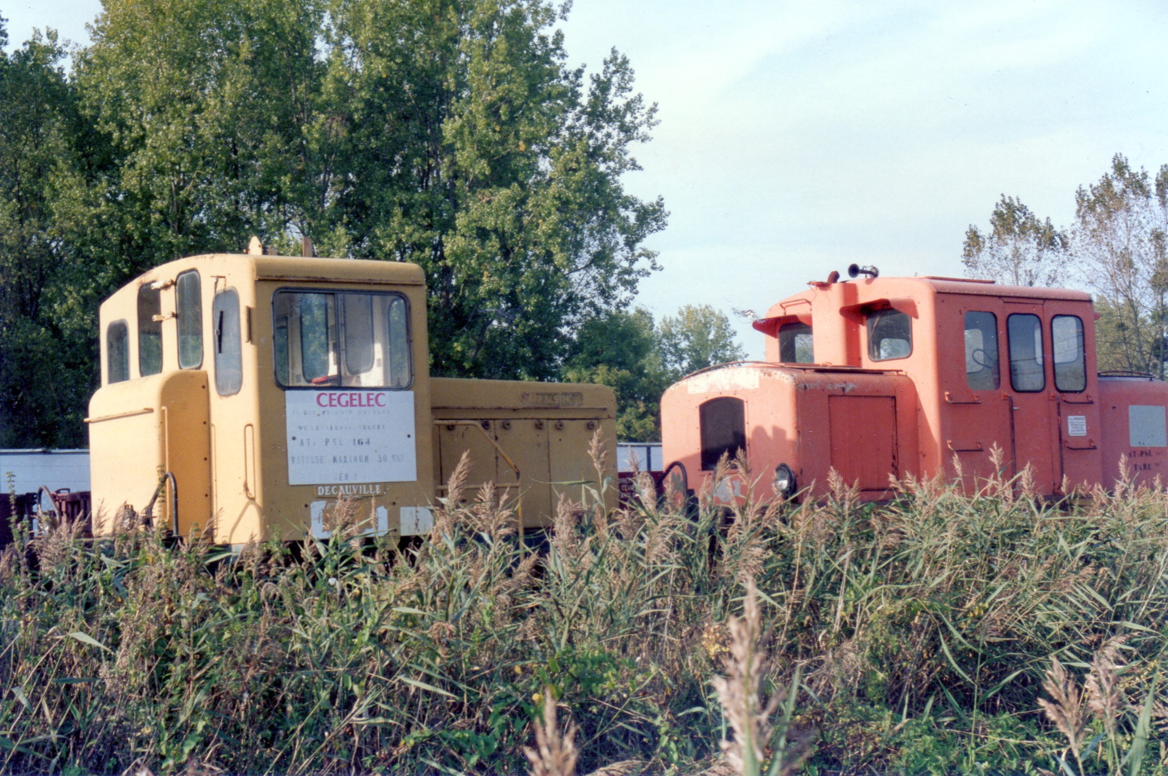 Voici les engins que CEGELEC a utilisé sur le chantier de la LGV Nord. Ici, un ex Y 2200 SNCF. Il porte une plaque "Decauville" qui n'a rien a y faire (visiblement piquée sur un vrai Decau), et on peut voir la trace d'un autocollant "GEC-Alsthom" sur le capot avant. Agrément AT1 PSL 164