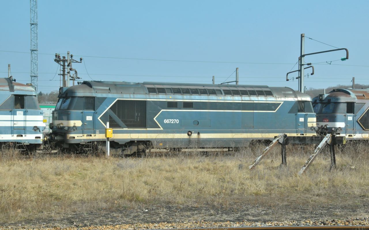 Voici la 667270 (ex 67055 mise en service le 14-05-1965) en tête d'un TM à la sortie Nord du dépôt de Saint Pierre des Corps