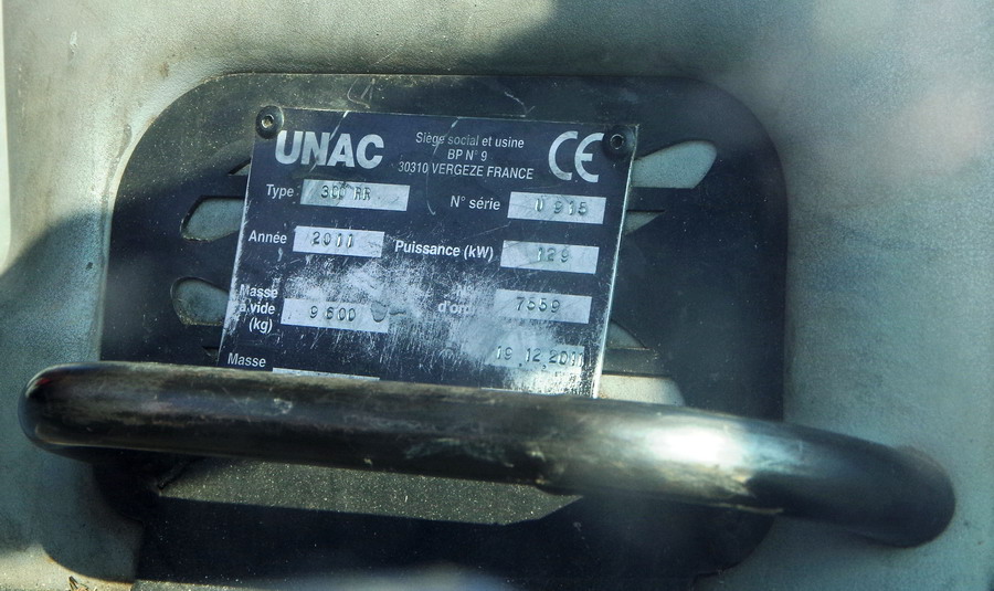 Débrousailleuse UNAC 300 RR n° de série U 916 de 2011 n°d'ordre 7559 PV 19-12-2011 pour SEFA Environnement U3