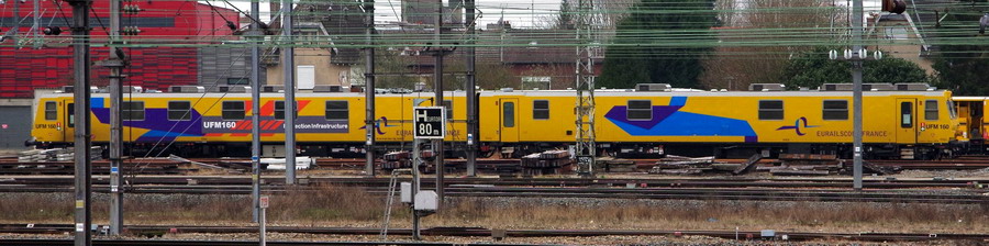 L'UFM 160 est en cours d'agrément sur le réseau ferroviaire national. C'est un engin construit par Plasser & Theurer (https://www.plassertheurer.com/fr/machi ... em160.html) pour Eurailscout initialement prévu pour utilisation aux Pays-bas. Il a dû être adapté pour circuler en France notamment en recevant les équipements de sécurité obligatoires et spécifiques à la France : DAAT, répétition des signaux, KVB...