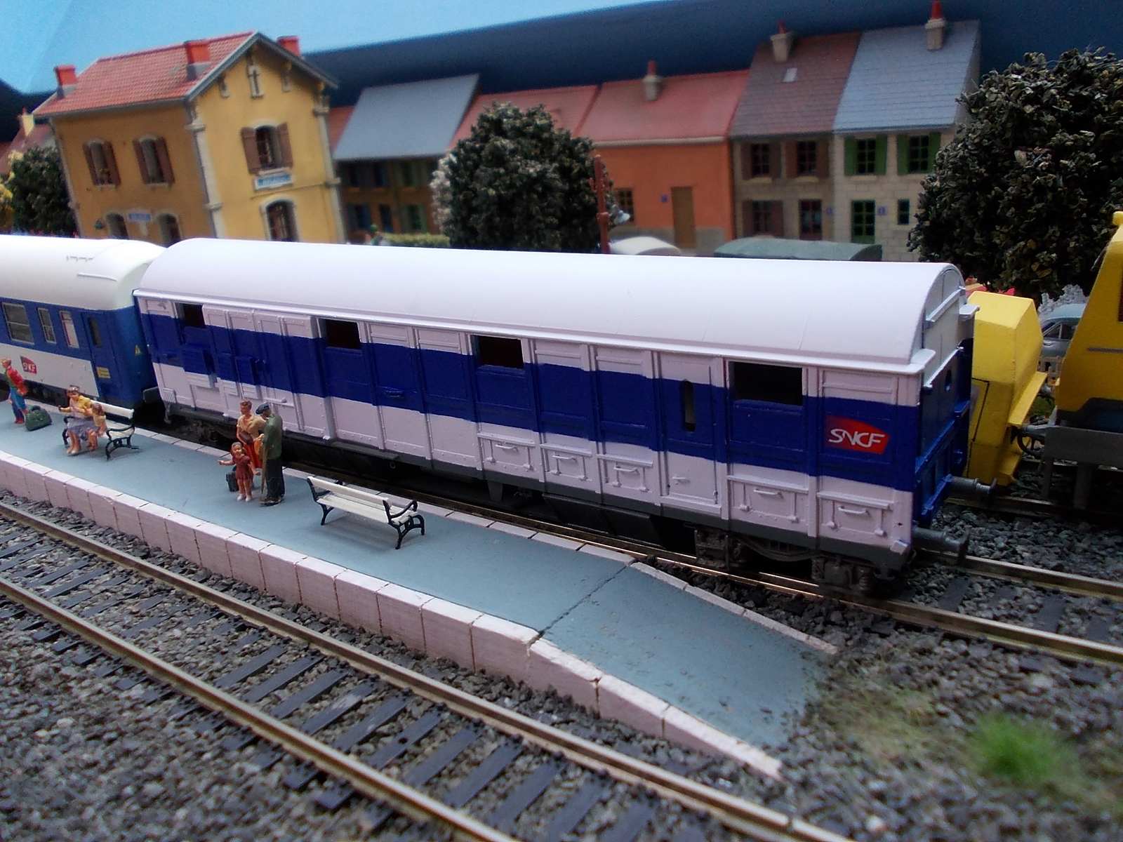 Autre variante de wagon de secours,la dernière livrée appliquée sur les wsgi.Sur une base de Jouef.
