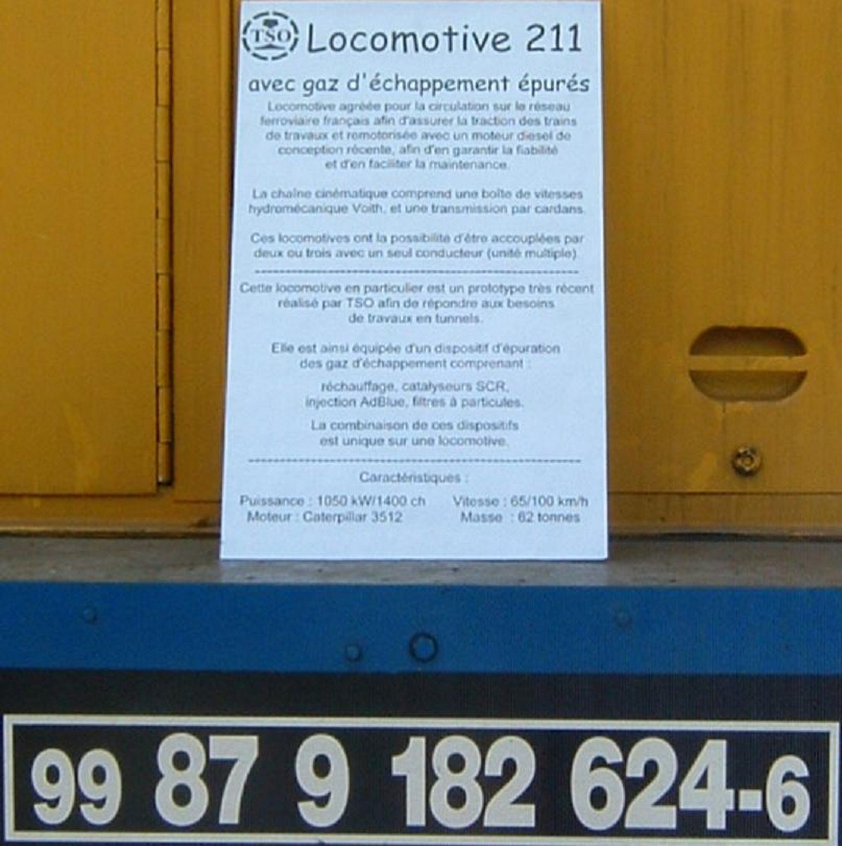 Il vient compléter la gamme des "spéciaux TSO" en plus des 99 87 9 182 570-1 et 99 87 9 182 554-5 qui sont munies d'un tube d'échappement positionné approximativement du par brise à l'avant de la machine et relié respectivement aux "wagon Depollux 1" et "wagon Depollux 2".