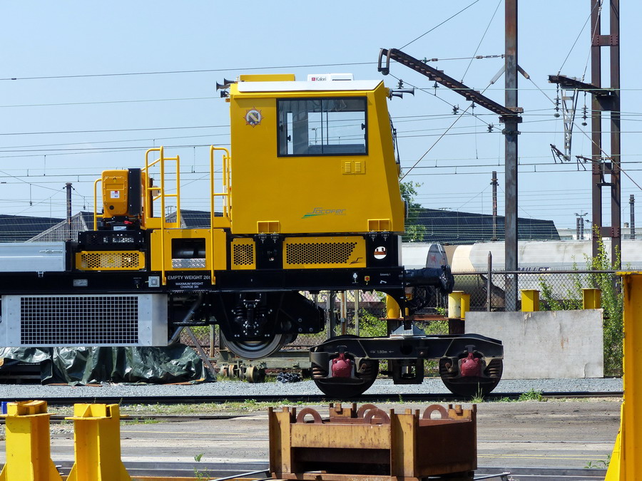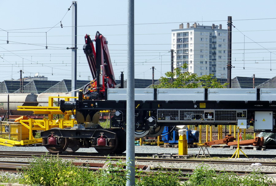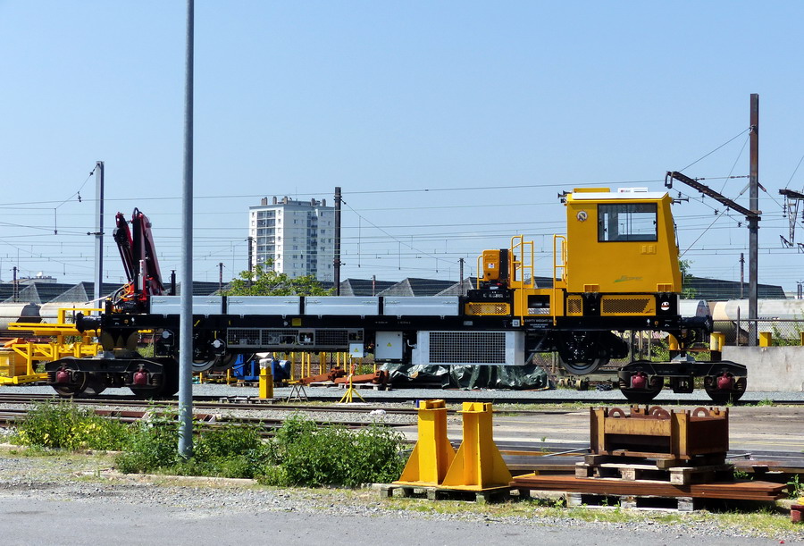 Une des draisines pour le Pakistan Railways sortant de fabrication des ateliers de la Socofer à Saint Pierre des Corps en photos la n°6 série A0114 avec essieux pour voie large 1676 mm ce qui explique les bogies pour déplacer sur voie normale