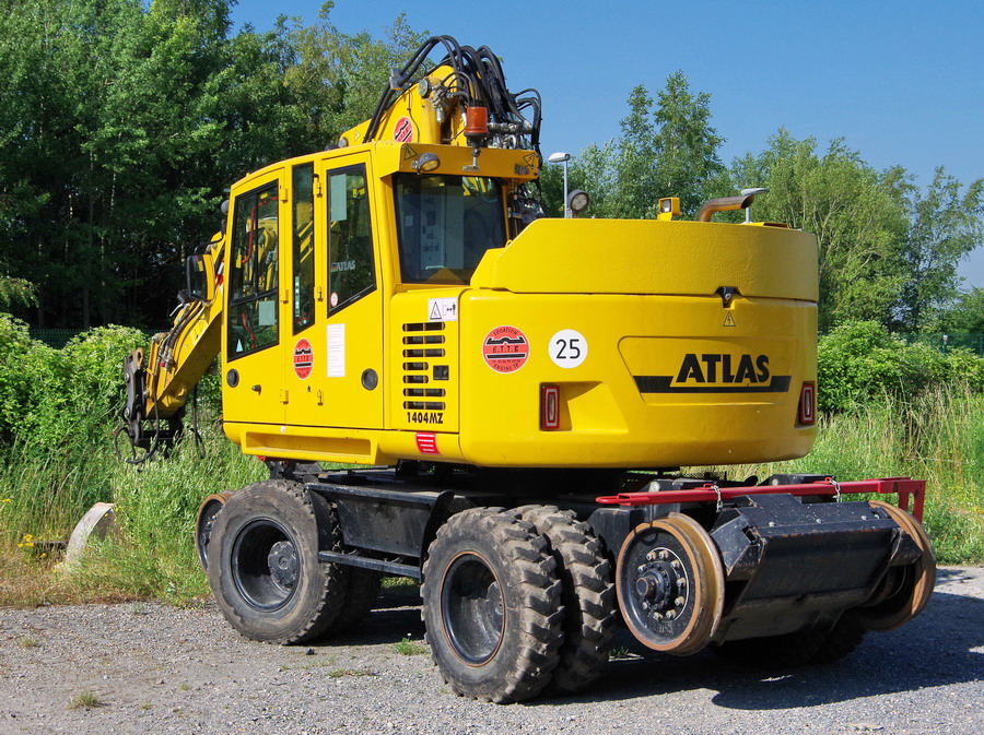 Voici la Pelle Rail route Atlas 1404 KZW n°241Z301929 de 2015 pour ETTB location TP n°460 avec marquage MZ
