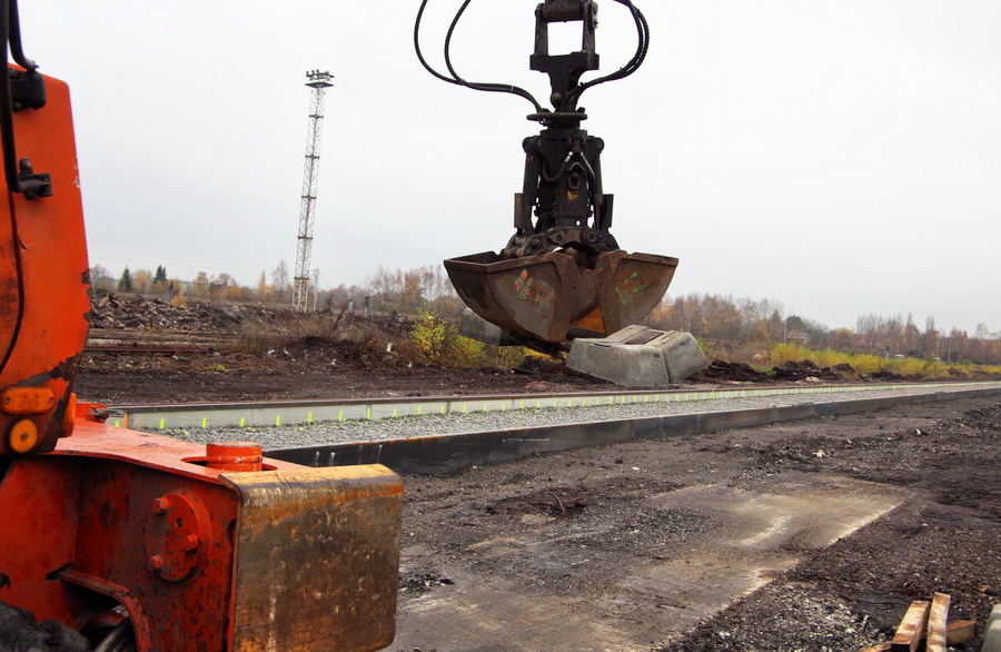Traverses bi-blocs en béton armé sur la base de travaux arrière à Longueau le 07-12-2018