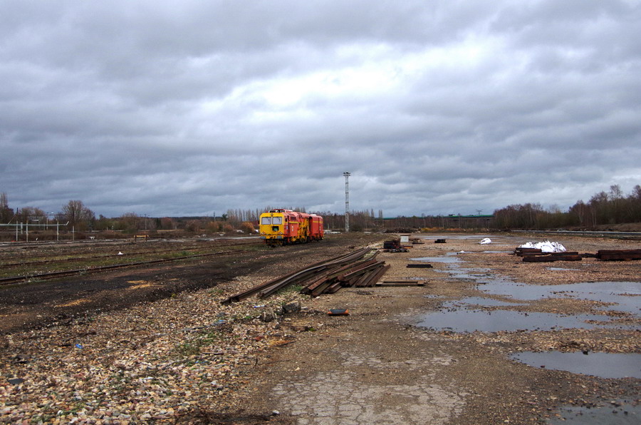 vue sur la basse de travaux arrière de Longueau avec la Tirefonneuse Geismar Stumec TC n°1693342 - Colas Rail 444