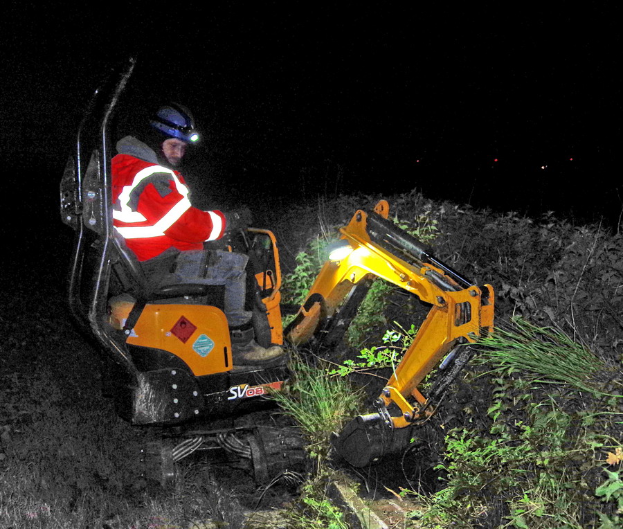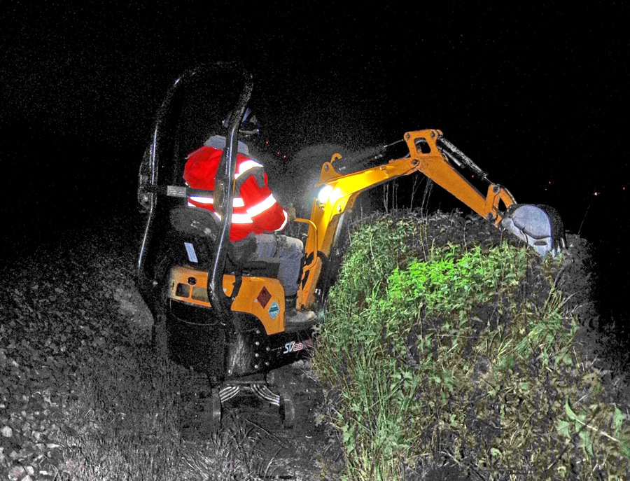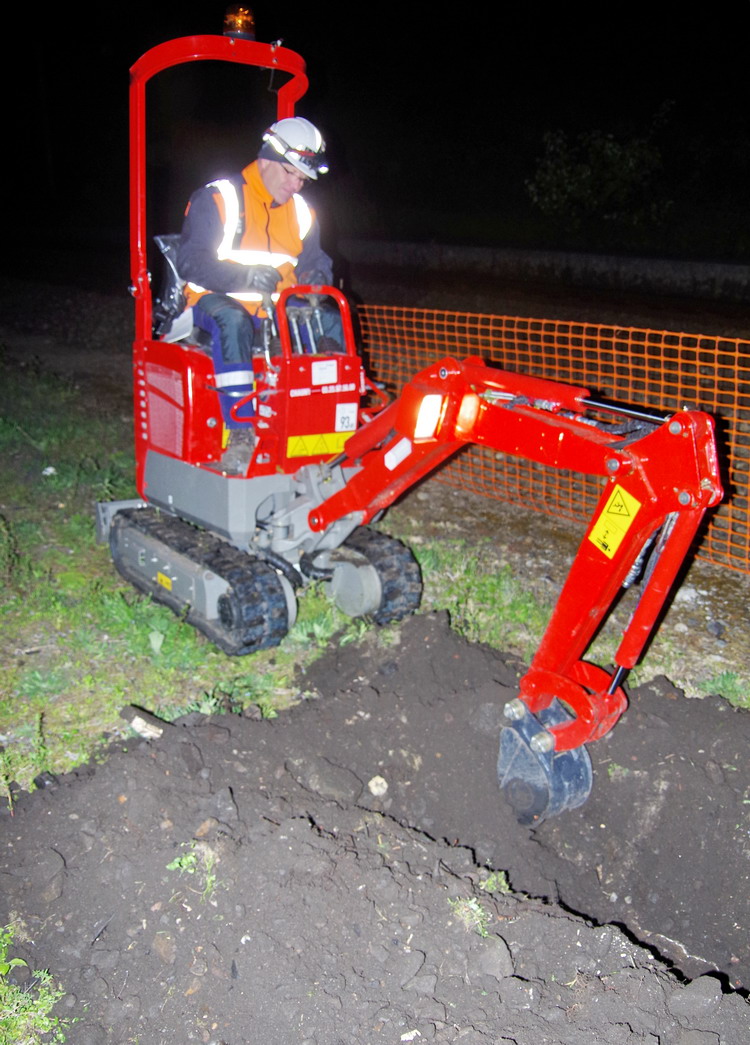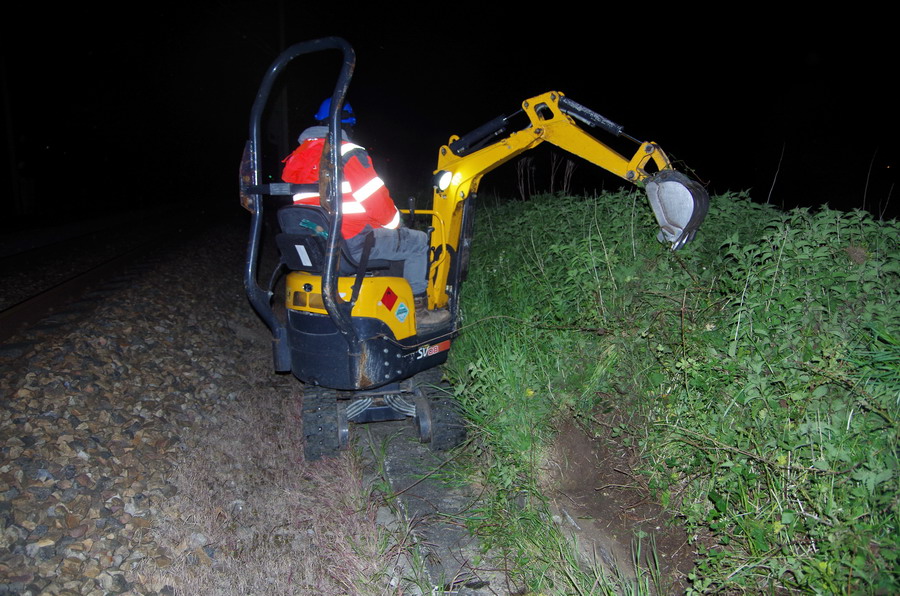 travaux préparatoires pour poser le câble de la fibre optique nuit du 14 au 15-05-2019 au niveau du PN 67 à Essigny-le-Grand (02)