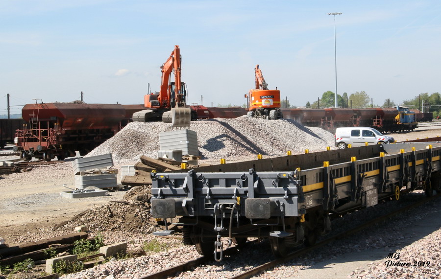 utilisation de l'UNAC 22 TRR Colas Rail D1002900 pour le remplissage du ballasr dans les trémies le 23-05-2019