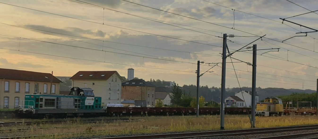 Voici la 669430 Infra avec le logo en livrée Fret (ex 66430 mise en service le 03-04-1969) en queue de TM passage par la gare de SPDC pour