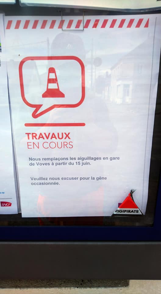 Voici en photo le début du RVB en gare de VOVES ( EURE ET LOIRE ) renouvellement voies 2 et pose d'une aiguille pour que la voie 4 rejoigne la voie 2 pour les train en provenance de CHARTRES .