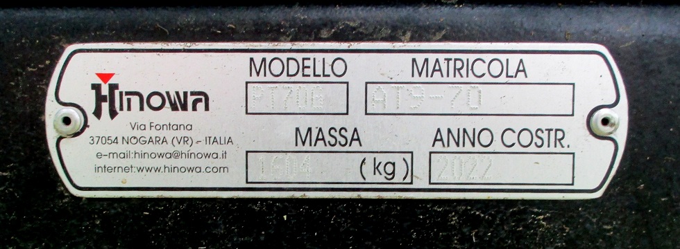 Modello PT 706 - Matriculo AT9-70 - Massa 1604 kg - Anno costr 2022